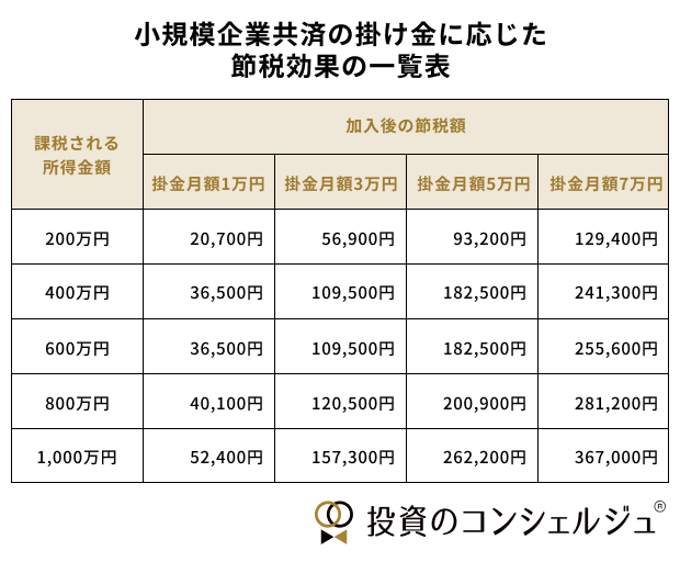 課税所得が1,000万円で、毎月70,000円の掛金を拠出すると年間で367,000円の節税効果を得られることがわかりますね。10年間の節税効果は、367万円にもなります。